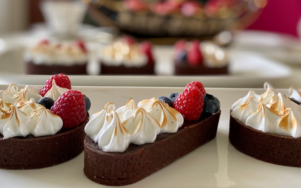 OBŁĘDNE TARTALETKI Z SOSEM KARMELOWYM, GORZKĄ CZEKOLADĄ I WŁOSKĄ BEZĄ