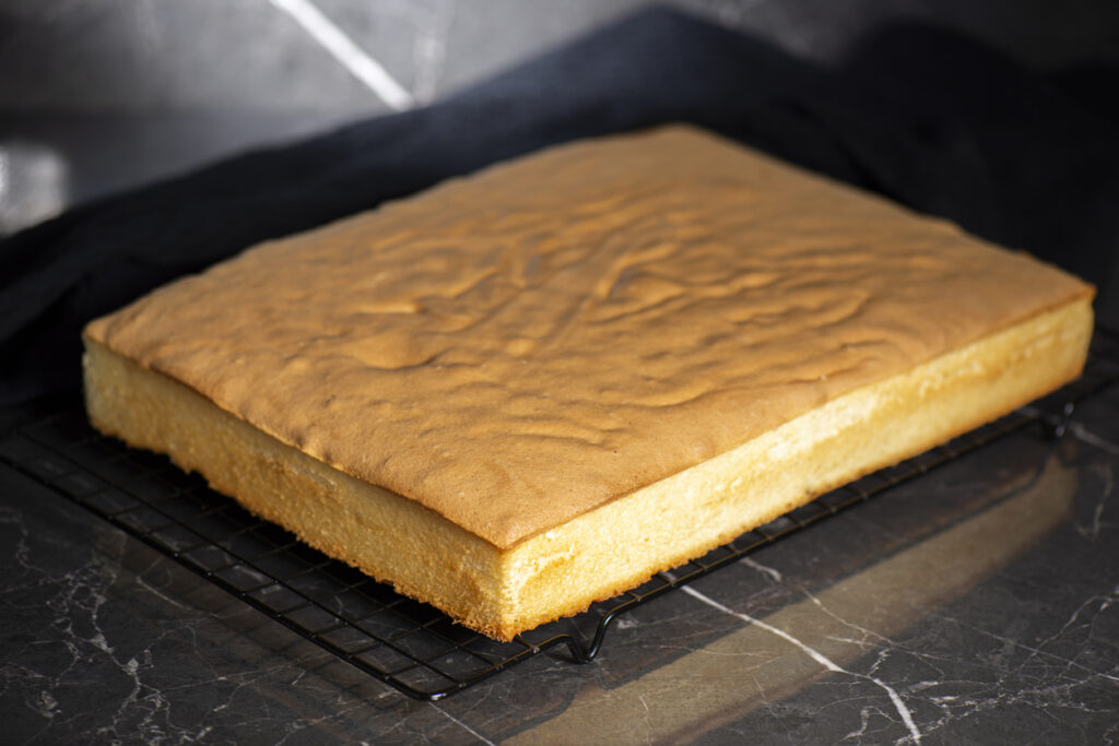 - Upieczony biszkopt wyjmij z piekarnika i odstaw na bok do wystudzenia.