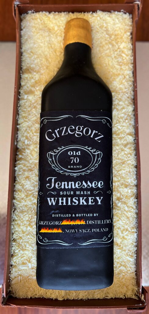 Szukasz oryginalnego pomysłu na tort urodzinowy dla mężczyzny, który lubi whiskey ? Oto coś, co z pewnością zrobi wrażenie – tort w kształcie butelki whiskey, podany w jadalnej skrzynce z czekolady i „wiórkami” z białej czekolady! To nie tylko wyjątkowa dekoracja, ale też pyszne wnętrze, które zachwyci każdego gościa. W tym wpisie pokaże Ci, jak stworzyłam ten personalizowany tort krok po kroku – idealny na urodziny, wieczór kawalerski lub inną dorosłą okazję.